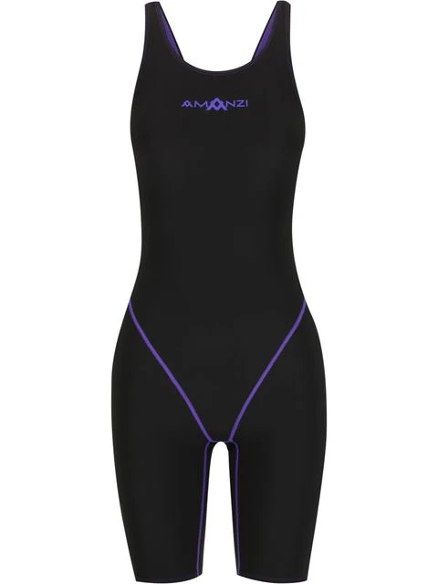 The AMANZI Acceler8 RIZE Racing Kneeskin – Jet/Jewel is a FINA Approved (now known as World Aquatics) racing swimsuit, tailored to competitive swimmers across all levels.