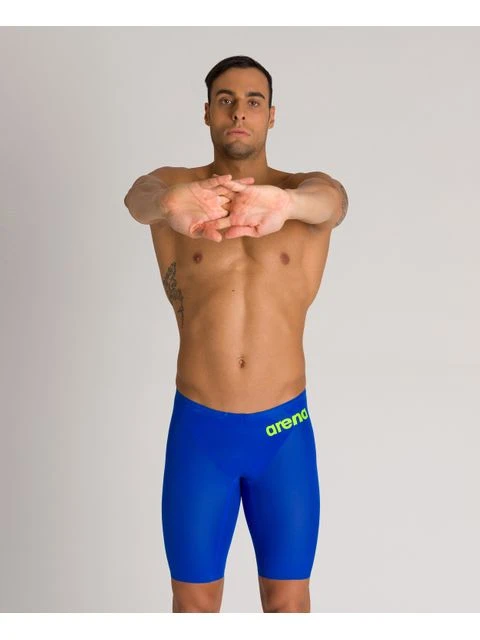 Your racing experience is about to get faster with the Arena Powerskin Carbon Air 2 Jammers – Blue. The Carbon Air 2 has an innovative external one-piece construction and new lining design for maximum speed, comfort and flexibility. Like the classic Arena Carbon Air swimsuits, these jammers are crafted from an ultra-lightweight fabric with horizontal carbon bands for intelligent muscle compression. This World Aquatics Approved style smoothes the body into a streamlined shape from the waist to the knees with the added benefit of no stitching for zero chafing and dragging. Elite swimmers love this swimsuit for its ease-of-wear, unrestricted movement and second-skin feel.