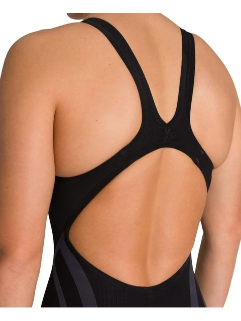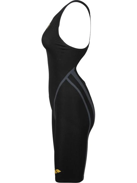 Feel the power in the Arena Powerskin Carbon Core FX Open Back Kneelength – Black/Gold. This FINA approved racing swimsuit features the latest carbon cage fabric, which has horizontal and vertical grids that surround specific muscle groups for very strong and durable all over muscle compression, giving you a locked in feel.