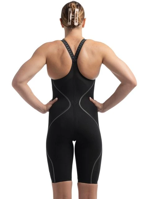 Th Speedo Fastskin LZR Pure Intent 2.0 Closedback Kneeskin – Black/Iridescent has been developed by swimmers for swimmers. Still with compressive dual layers and an ergonomic seam construction designed to connect key muscle groups for greater power return, the Intent 2. range has a new long-lasting water-repellent finish. Textured fabric zones target drag reduction, so you get the very best from your swim, while the triple fabric construction with bonded seams has been designed to enable greater movement. The closedback offers greater coverage which can improve performance and may be preferred by swimmers with straight backs. This product has been World Aquatics Approved.