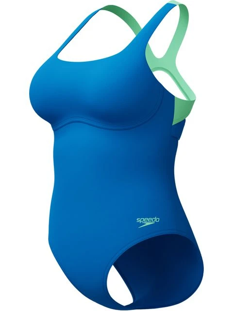 The Speedo Flex Band Swim Bra One Piece – Lagoon Blue will power you through your workout feeling supported.