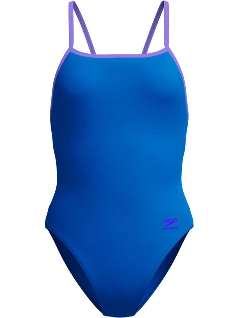 The Speedo Solid Tri Back One Piece – Lagoon Blue/Indigo Glow features Speedos most compressive fit and cheeky bum coverage, its modernised shape frees up the hips and shoulders for a distraction-free fit. Impressively durable, it’s cut from chlorine-resistant Endurance+ fabric.